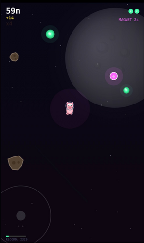 Guide your pig through dangerous asteroid fields. Collect fuel to stay alive and grab power-ups to boost your score.